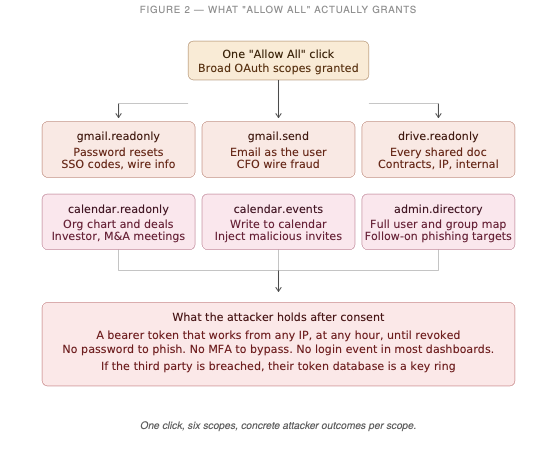 That is the whole breach. One consent screen. One checkbox. One AI tool nobody on the security team ever reviewed.