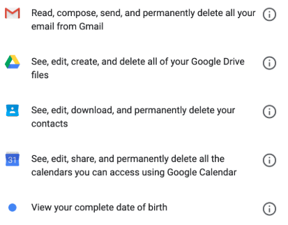 Most well-built apps ask for narrow scopes: "I need calendar read, that's it." But a surprising number of AI tools, productivity suites, and meeting bots ask for the kitchen sink, either because they legitimately do many things or because the developer didn't want to implement the consent UX twice.